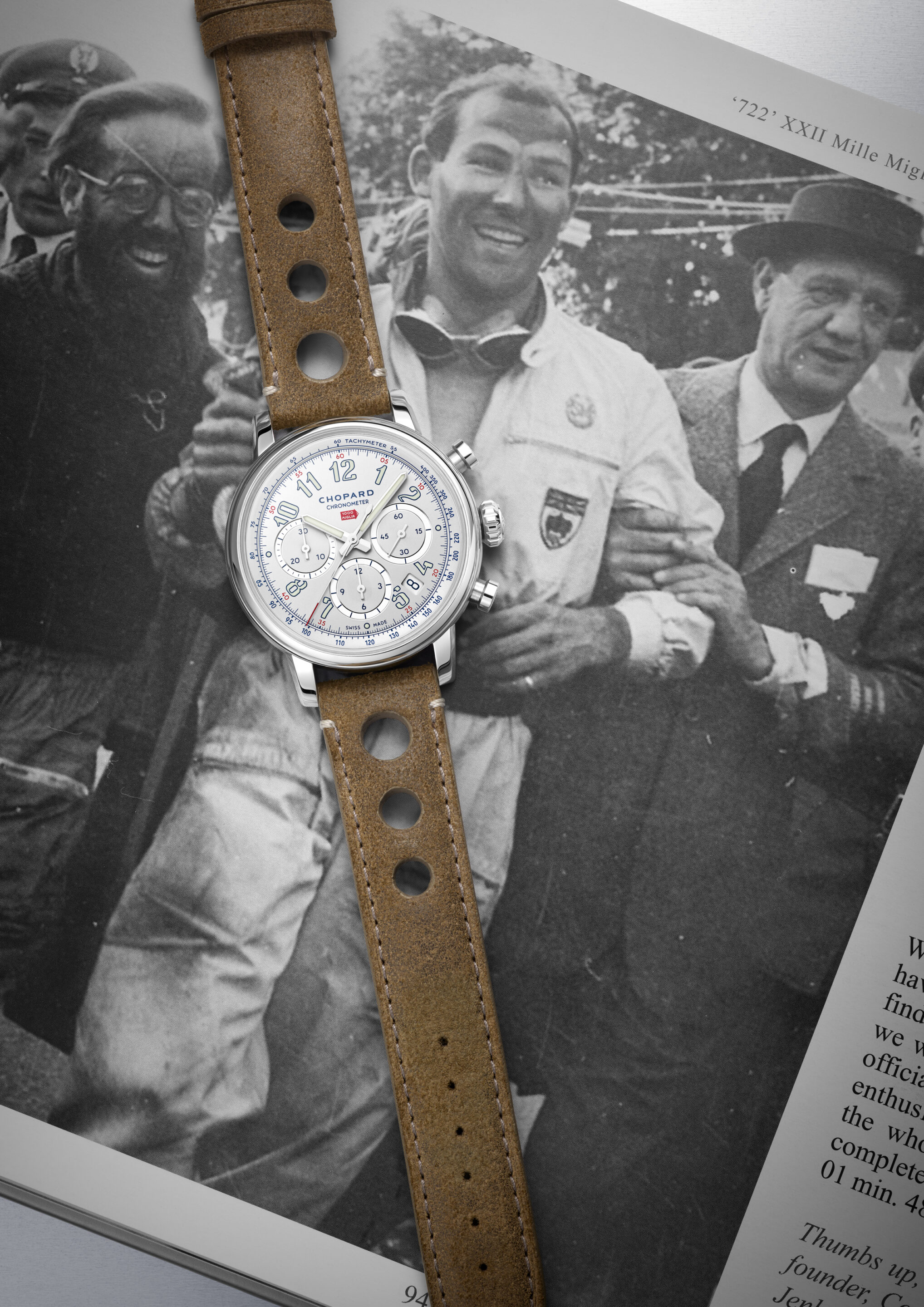 Chopard celebra uno de los capítulos más legendarios en la historia del automovilismo con una edición limitada que conjuga precisión suiza, inspiración británica y espíritu deportivo. El Mille Miglia Classic Chronograph Tribute to Sir Stirling Moss rinde homenaje al 70° aniversario de la victoria récord de Sir Stirling Moss y Denis Jenkinson en la Mille Miglia de 1955, una hazaña que permanece inigualada.