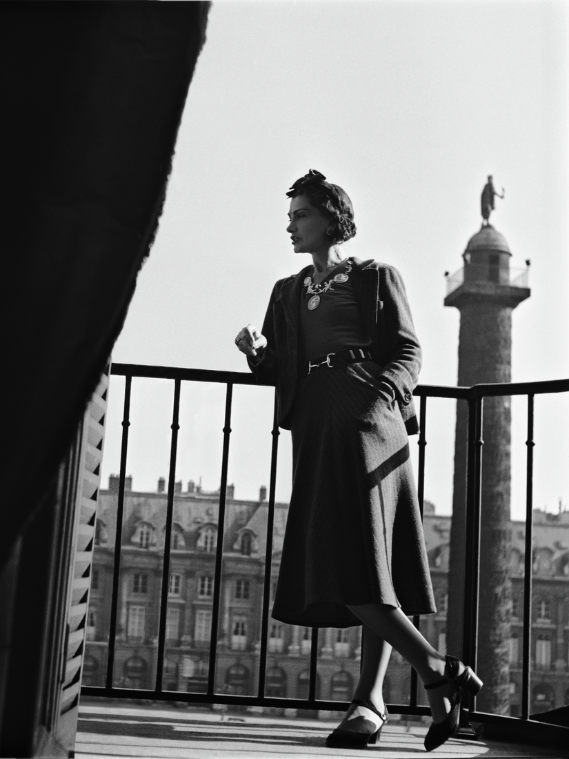 Gabrielle Chanel en el balcón de su Suite en el Hotel Ritz, París. Cortesía CHANEL