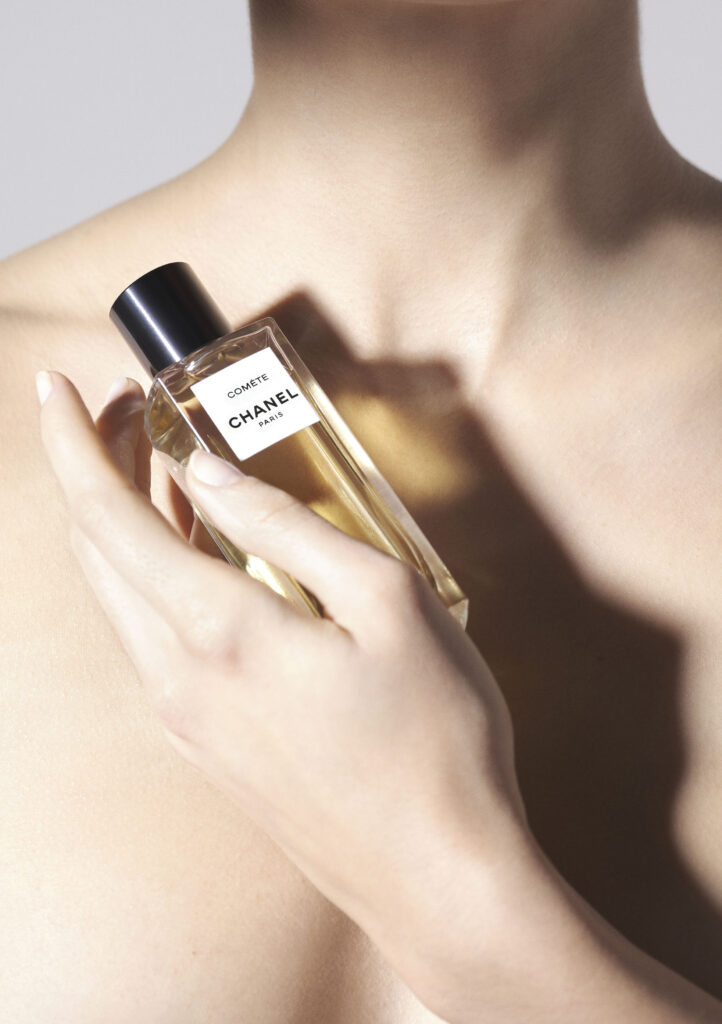 Gabrielle Chanel estaba convencida del poder mágico del cometa, omnipresente en su universo, y convirtió esta estrella en uno de sus símbolos de eterna suerte y en el emblema de su optimismo inquebrantable. Como un rastro de luz en la noche, este cometa singular ahora traza una estela olfativa a su imagen: rara e inolvidable. «Al principio de cada creación, necesitas un elemento inspirador, y para Comète, el punto de partida fue la idea de polvo de estrellas», explica Olivier Polge, el creador de perfumes interno de Chanel. «El cometa es un símbolo fuerte para Chanel, y pienso en particular en el collar Comète de la colección de alta joyería de 1932, que se lleva abierto, descansando directamente sobre la piel, y me recuerda la envolvente estela de una fragancia para la piel».