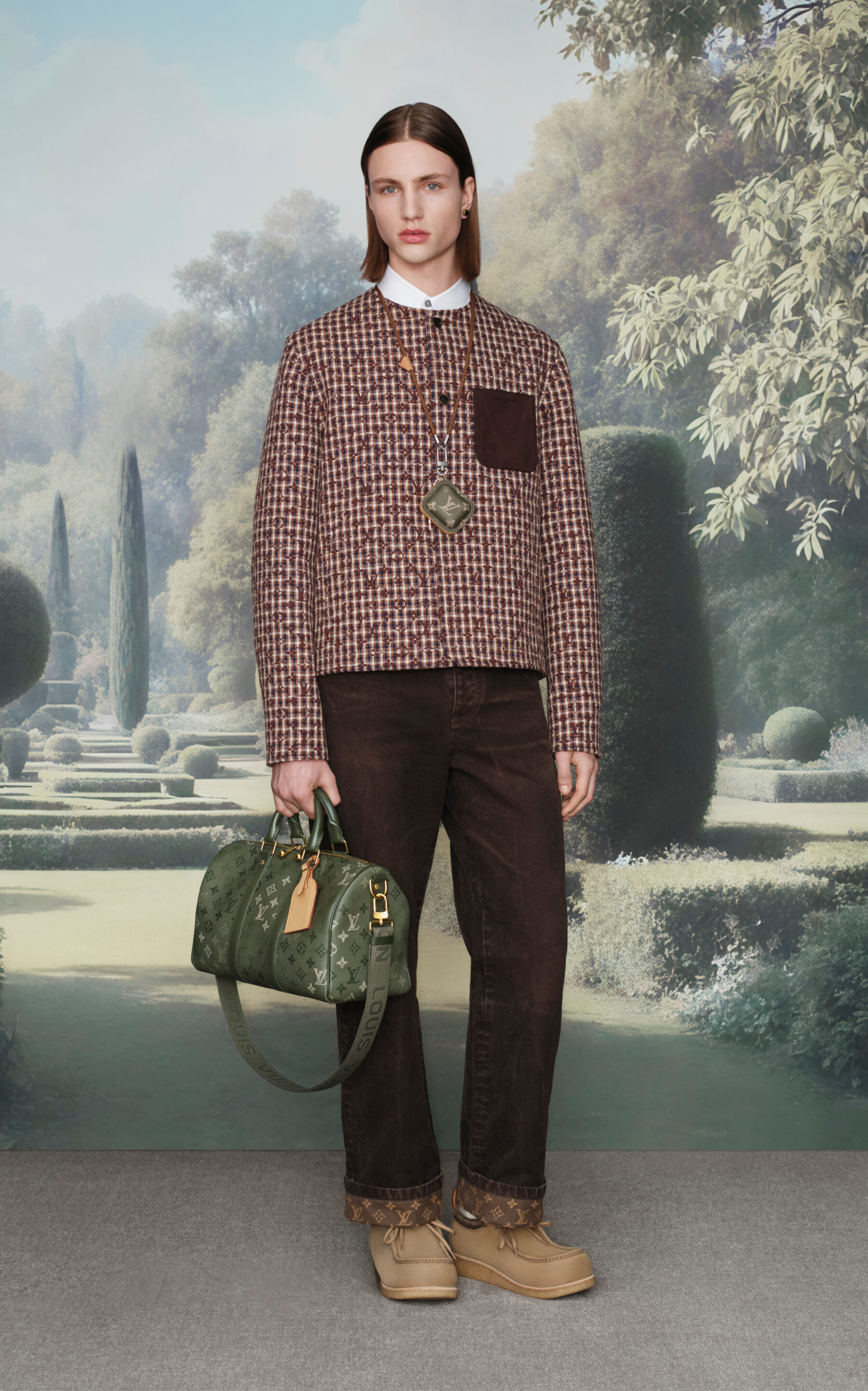 Louis Vuitton presenta su Men’s Pre-Collection Spring-Summer 2026, una propuesta visionaria firmada por Pharrell Williams, que traslada el espíritu de la Maison desde París hasta la apacible campiña inglesa. En este escenario rural, la colección se erige como un homenaje contemporáneo a los códigos clásicos del vestuario británico, reinterpretados a través del savoir-faire parisino que distingue a la firma.