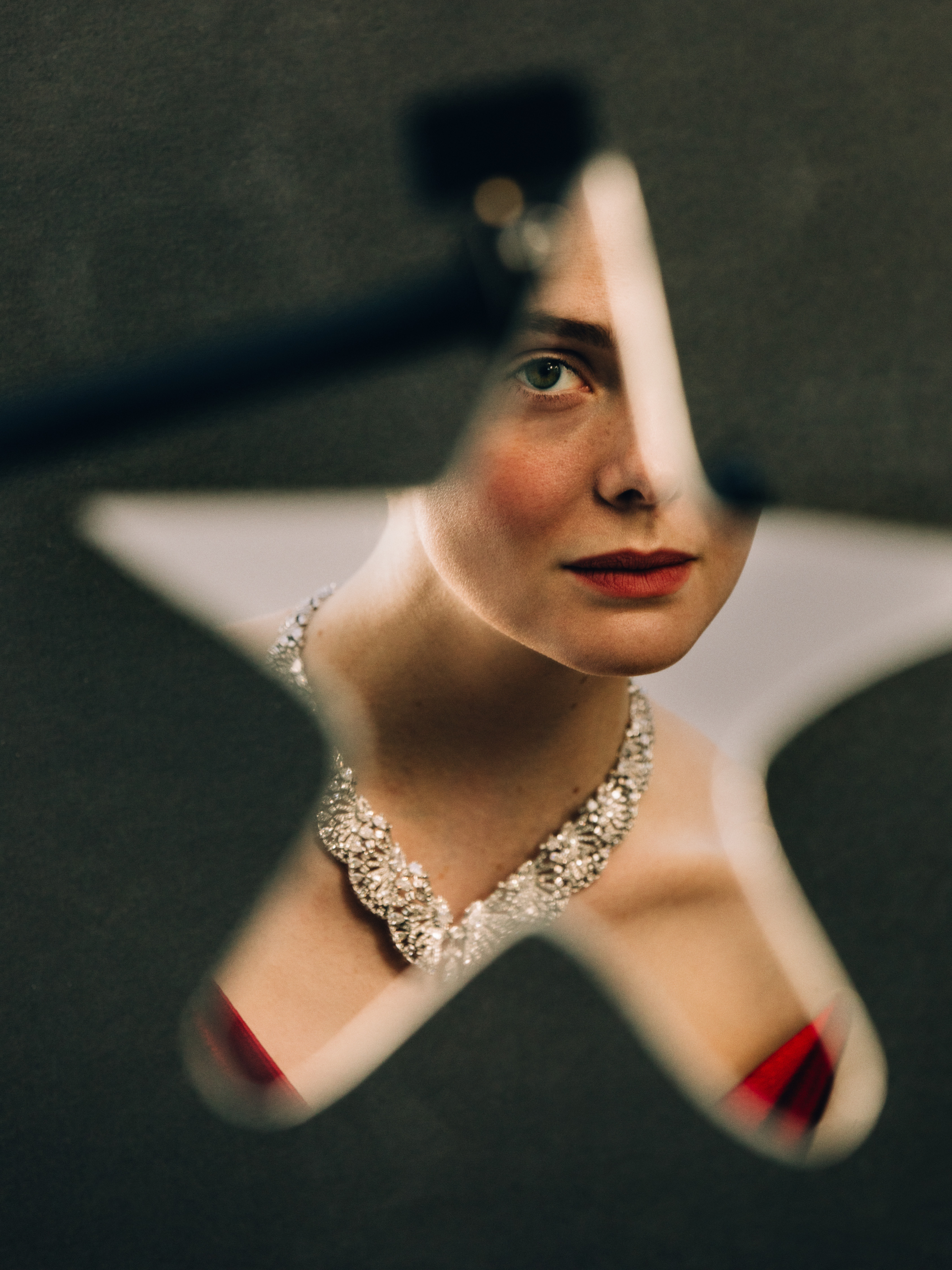 La actriz eligió el collar Pavocelle, parte de la colección En Équilibre,  colección de alta joyería de Cartier, presentada en capítulos sucesivos en Estocolmo y Beijing, y concebida como una reflexión sobre el equilibrio que define el estilo de la maison siendo una propuesta que explora la armonía entre forma, volumen y movimiento.
