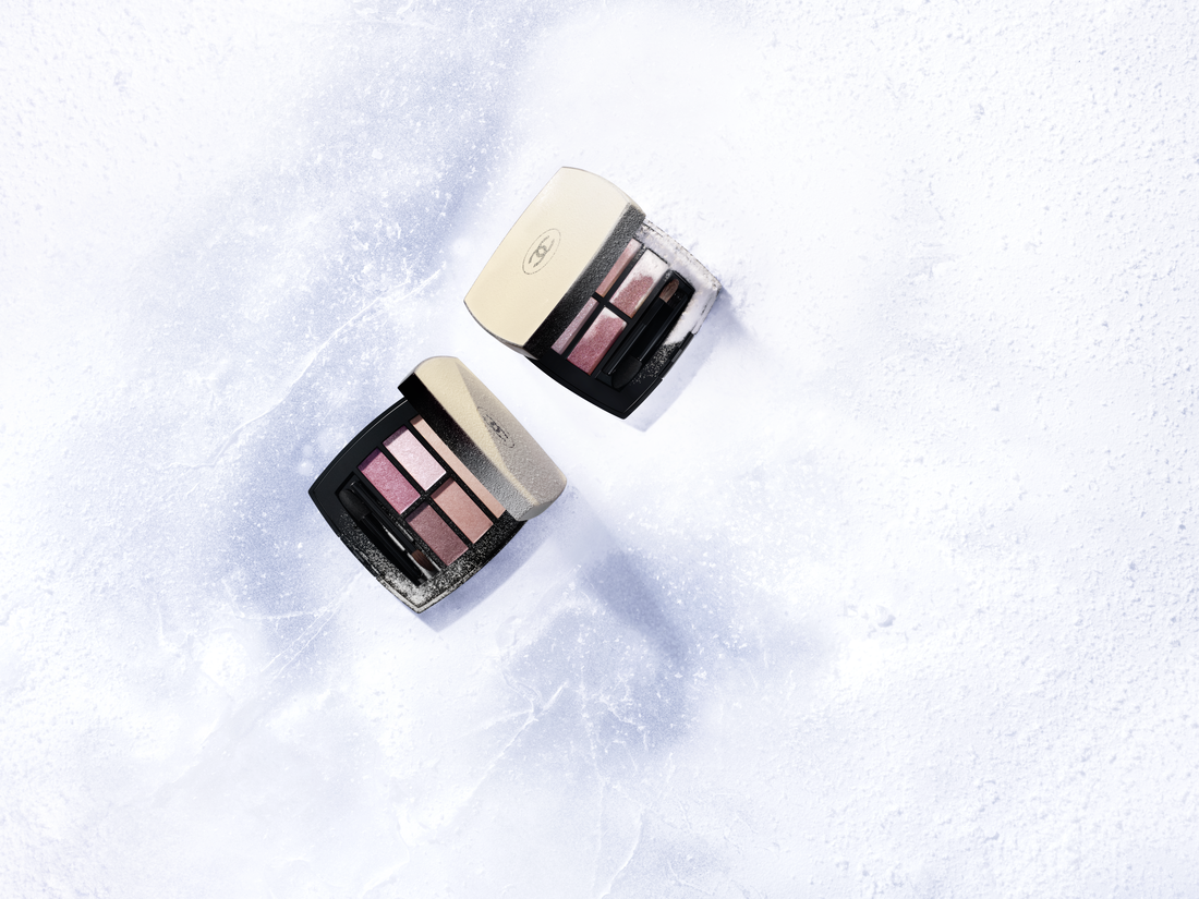 Entre los colores encontramos un beige rosado, un rosa esmerilado ligeramente azulado, un rosa pálido, un tono berenjena con brillo rosado y un palo de rosa marrón intenso, todos estos son sutilmente nacarados para destacar aún más la mirada bajo la luz. La paleta cuenta con un aplicador de espuma y un pincel especial para difuminar las sombras y lograr ese acabado satinado en los párpados.